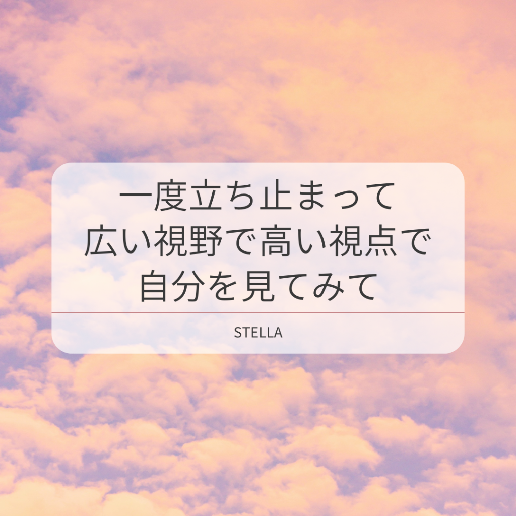一度立ち止まって広い視野で、高い視野から客観的に自分を見ることが大切です。